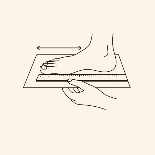 Per trovare la taglia giusta, misura la lunghezza del tuo piede dal tallone alla punta dell’alluce appoggiandolo su un foglio. Aggiungi circa 0,5 cm per garantire comfort durante la danza. Confronta la misura con la nostra tabella taglie per scegliere la scarpa perfetta per te.