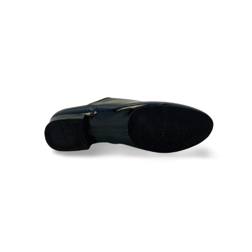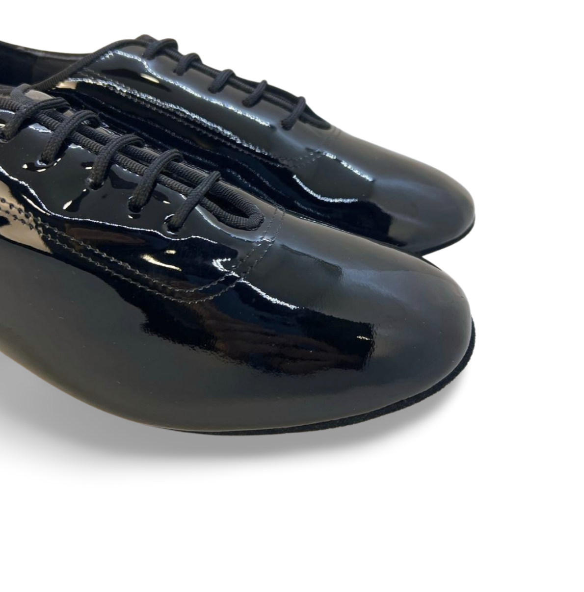La tomaia in vernice nera lucida dona un tocco raffinato e professionale, mentre la suola in bufalo permette la giusta aderenza e scivolata sul pavimento da ballo.
