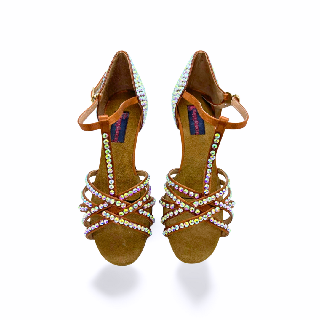 Happy Dancing 1500 Strass – Sandali da Ballo Latino con T-Bar